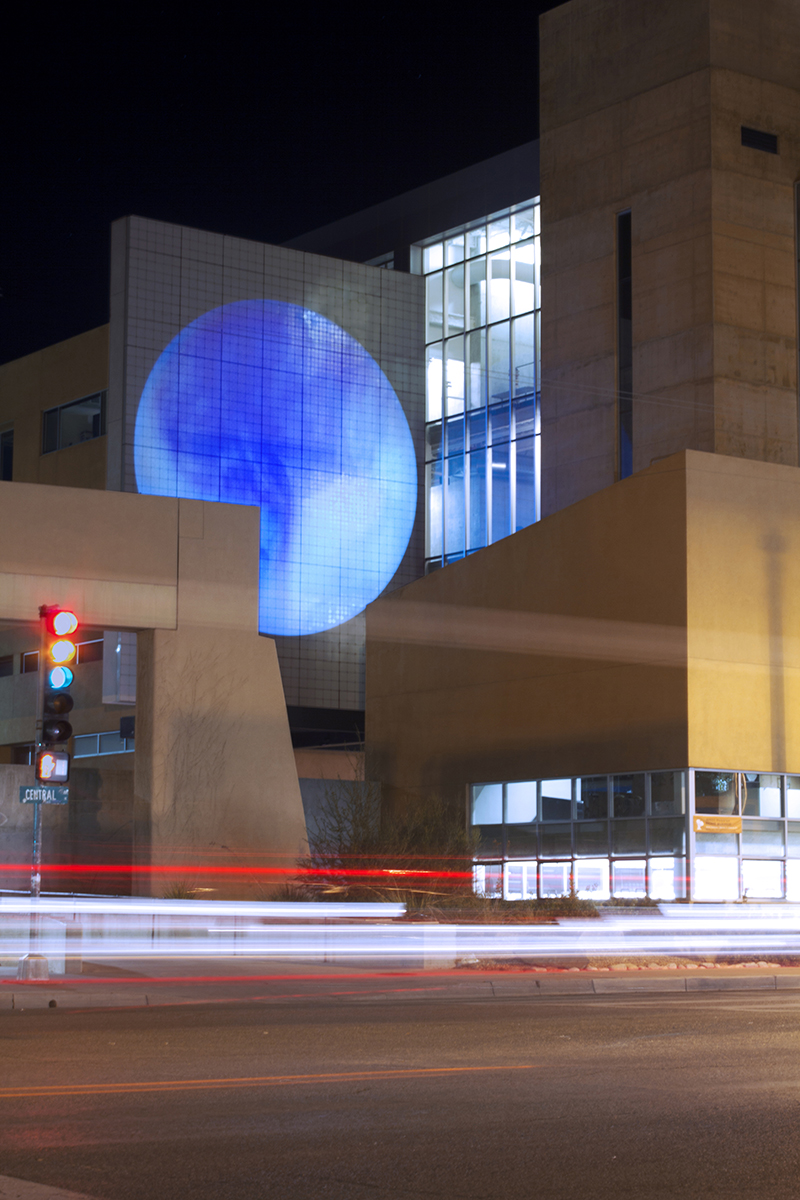 Additional Images Blue Flower/Flor Azul from across Route 66 Detailed View from across Route 66 at night Blue Flower/Flor Azul view from Amphitheater at night Blue Flower/Flor Azul at night